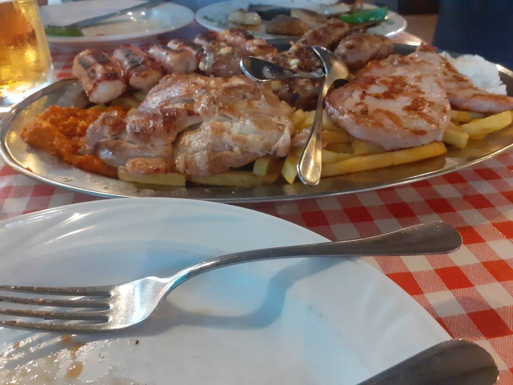 Il menù è tipicamente balcanico/mitteleuropeo e molto abbondante: cevapcici (questi sono fatti all’autentica maniera balcanica, non sono brutte imitazioni come qui da noi), lepinja (tipico pane bosniaco/croato), grigliate di carne (consigliate per due persone assolutamente, non una), verdure grigliate, ecc…il tutto accompagnato dalle tipiche birre del posto.